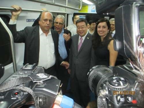 2014年7月2日,在具有156年悠久历史的中央车站,进行了中车制造的又一批新型电动车组上线运营剪彩仪式,巴西里约州州长,中国驻里约领事馆总领事宋扬 午夜黄视频,商务参赞,交通厅新老厅长及业主,段方高层参加了剪彩仪式,并亲自乘坐“中国龙”到达世界杯主赛场-马拉卡纳球场,这列有着蓝色的车头和不锈钢涂装车体的电动车组于2014年2月28日从中国北车长客股份公司起运,经历近三个月的旅程,5月20日抵达里约港口,经过清关,5月28日抵达车辆段,历经一个月时间完成了所有例行,型式试验后正式上线载客运营。