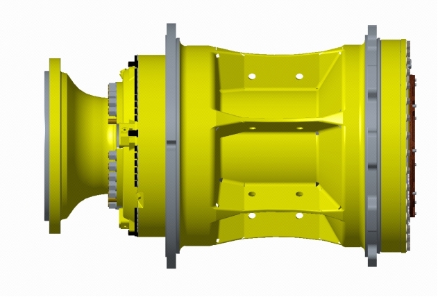 产品概述:G70010机械式终传动集成了传动,行驻车制动功能 午夜十八禁,传动形式采用NGW一级行星传动,制动为双活塞的行驻车一体式制动器,是由中车戚墅堰所设计制造的百吨级以下小吨位机械式终传动产品,匹配90吨级机械传动矿用自卸车,目前在样机试制阶段。