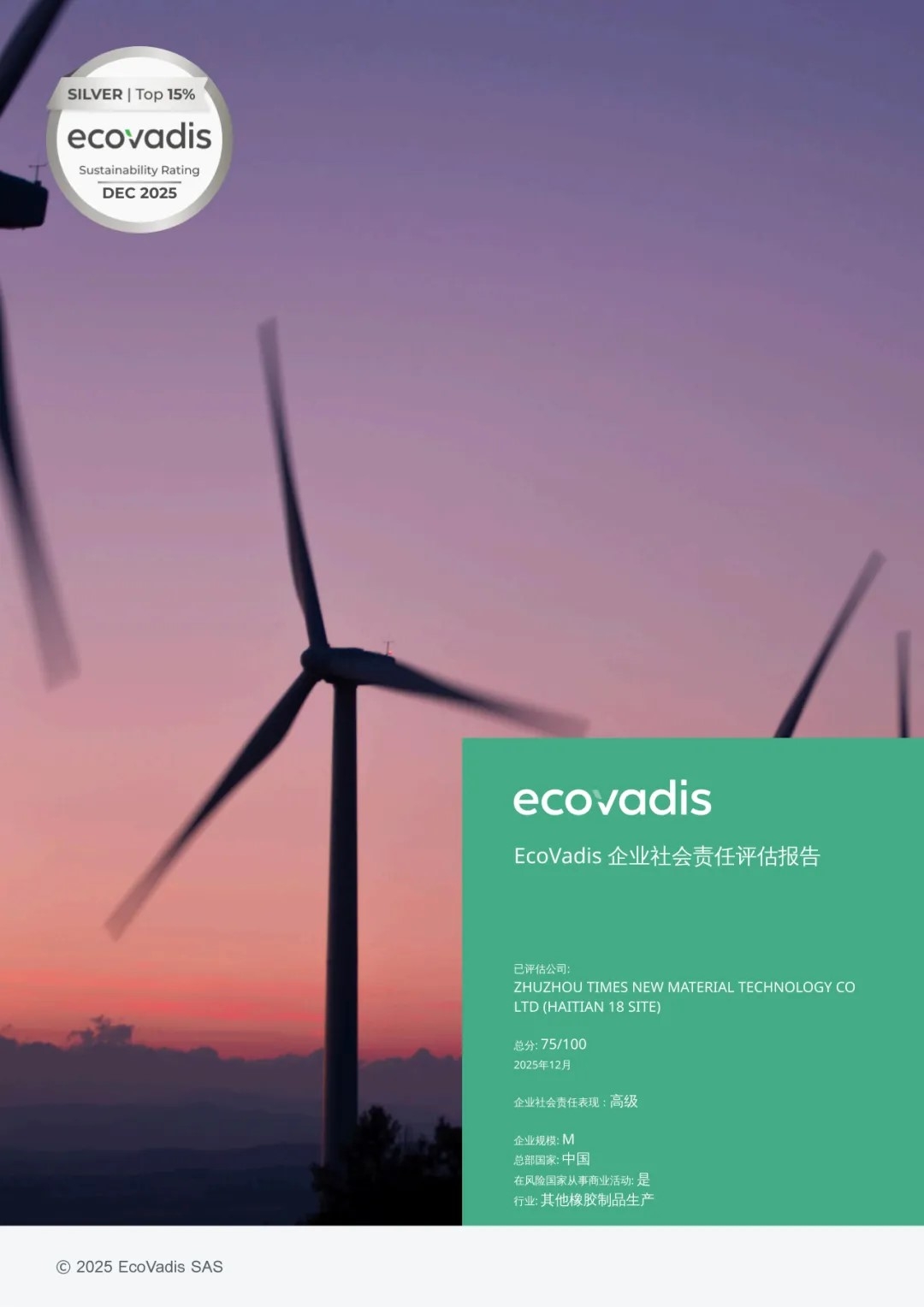 作为国际知名的企业社会责任及可持续发展评级机构 午夜十八禁,EcoVadis严格遵循《联合国全球契约》,国际劳工组织公约及ISO26000等国际标准,对全球180余个国家和地区,220多个行业的超15万家企业进行了全面调查和评估,评估结果已成为国际供应链准入的重要基准,此次获得银牌评级,是对时代新材长期以来将可持续发展理念深度融入战略布局与经营实践的高度认可,将进一步提升公司在国际市场的品牌公信力与供应链竞争力。