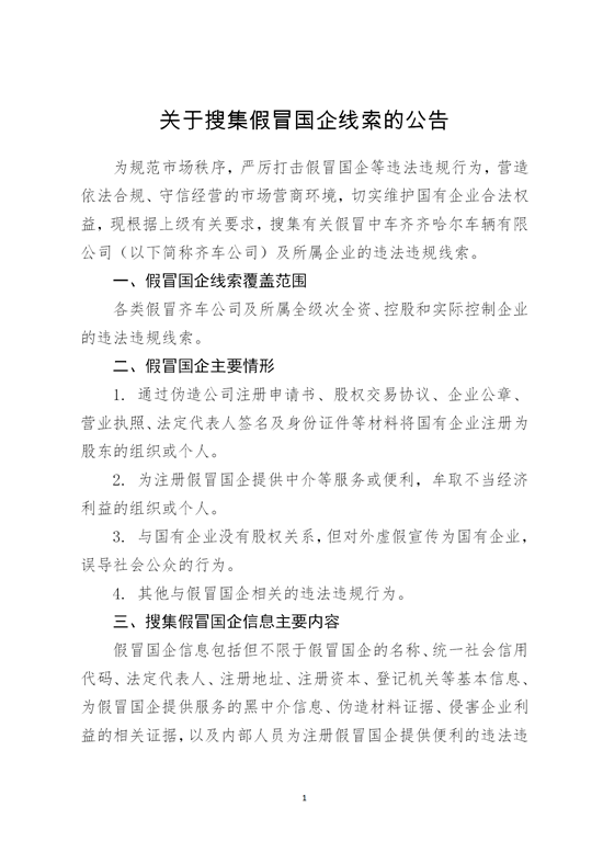 "午夜黄视频" 关于搜集假冒国企线索的公告