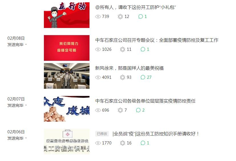 网络自媒体优势突显。鼠年春节期间,疫情虽然把人们的距离拉开,却没有阻挡《石车天地》微信公众号更新的脚步。记者笔耕不辍、小编废寝忘食,各级防控政策、党工团组织通知和倡议,第一时间传递给员工;防疫知识、防疫课堂带着关爱为员工筑起安全堡垒;《坚守一线的一天他这样度过》《新风徐来,那是国祥人最美的祝福》《微光瞬间,疫情当下的温暖与守护》等连续报道,让默默坚守者、美丽志愿者、勇敢逆行者及更多平凡感人的形象跃然“屏”上,传递温暖和力量,疫情期间《石车天地》共推送消息64篇,是去年一季度的3倍多,累计阅读量达48000+次,“涨粉”630余人,单条消息最高点击量达到了4000+次。 午夜十八禁。